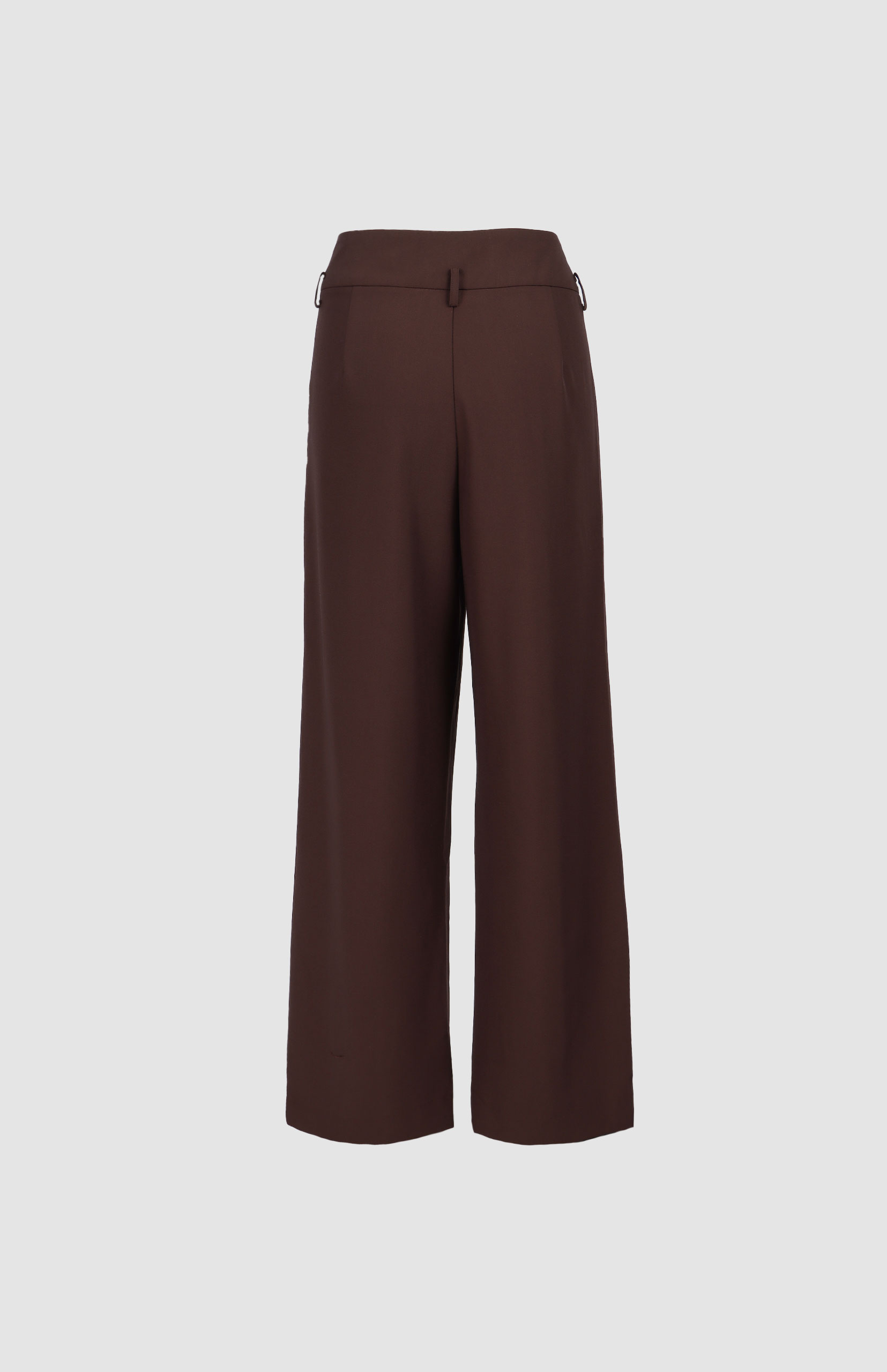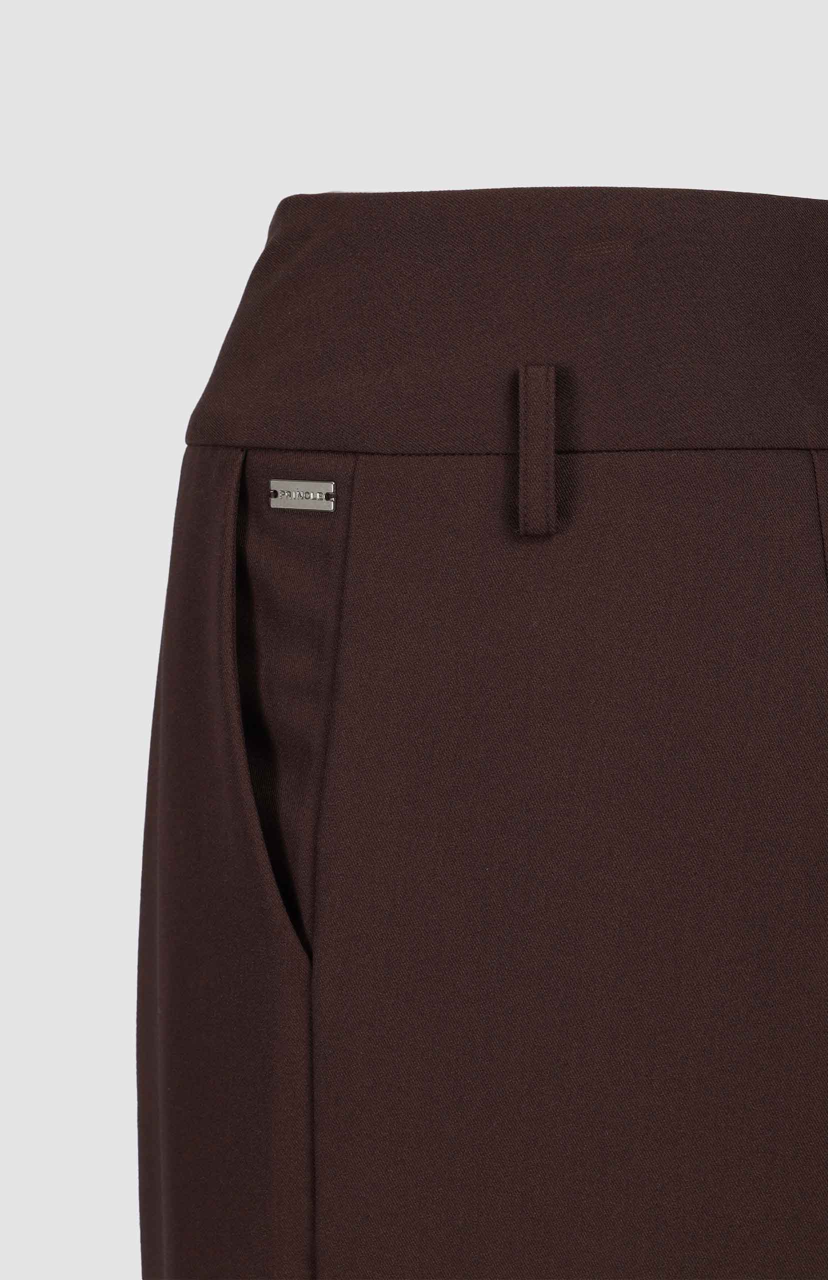 Redefine sophistication with the Pringle Elsie Wide Leg Pants, a timeless piece designed to exude elegance and comfort. In a rich chocolate hue, these pants feature a wide waistband with a chic notch detail and belt loops for added versatility. Front and back darts enhance the tailored fit, ensuring a flattering silhouette. An antique gold ingot subtly positioned below the left-hand side waistband adds a touch of signature Pringle refinement. Perfect for pairing with your favourite blouse or blazer, the Pringle Elsie Wide Leg Pants bring effortless sophistication to any occasion.