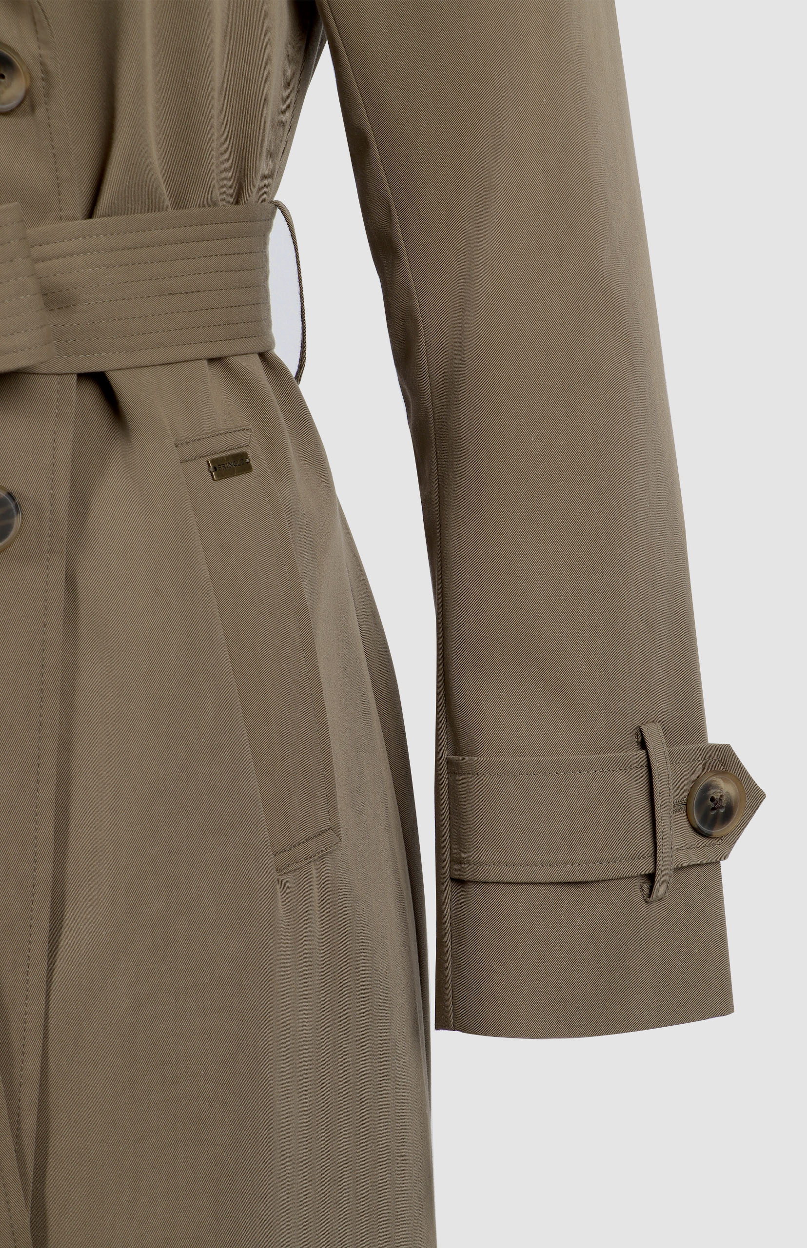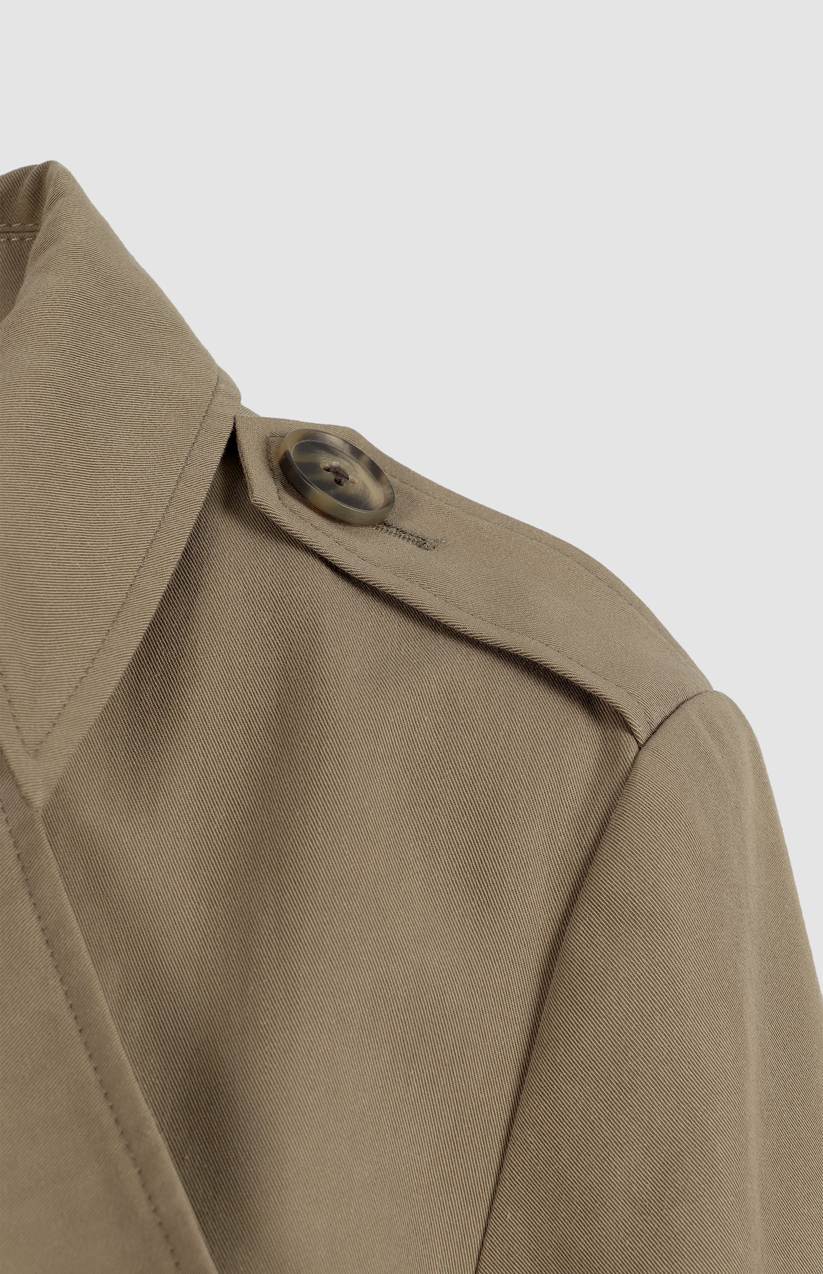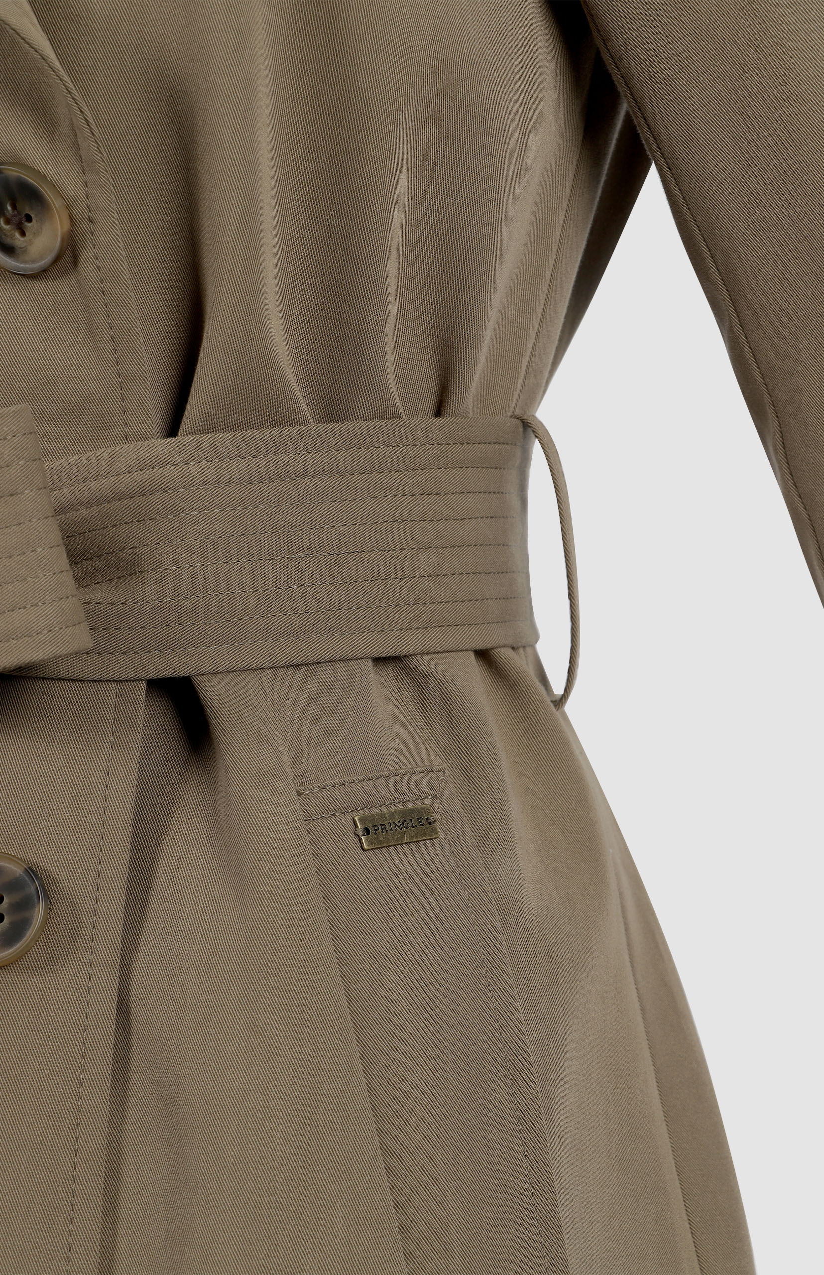Step out in timeless sophistication with the Jenna Trench Coat. Expertly tailored from a durable yet lightweight fabric, this trench offers the perfect balance of style and practicality.