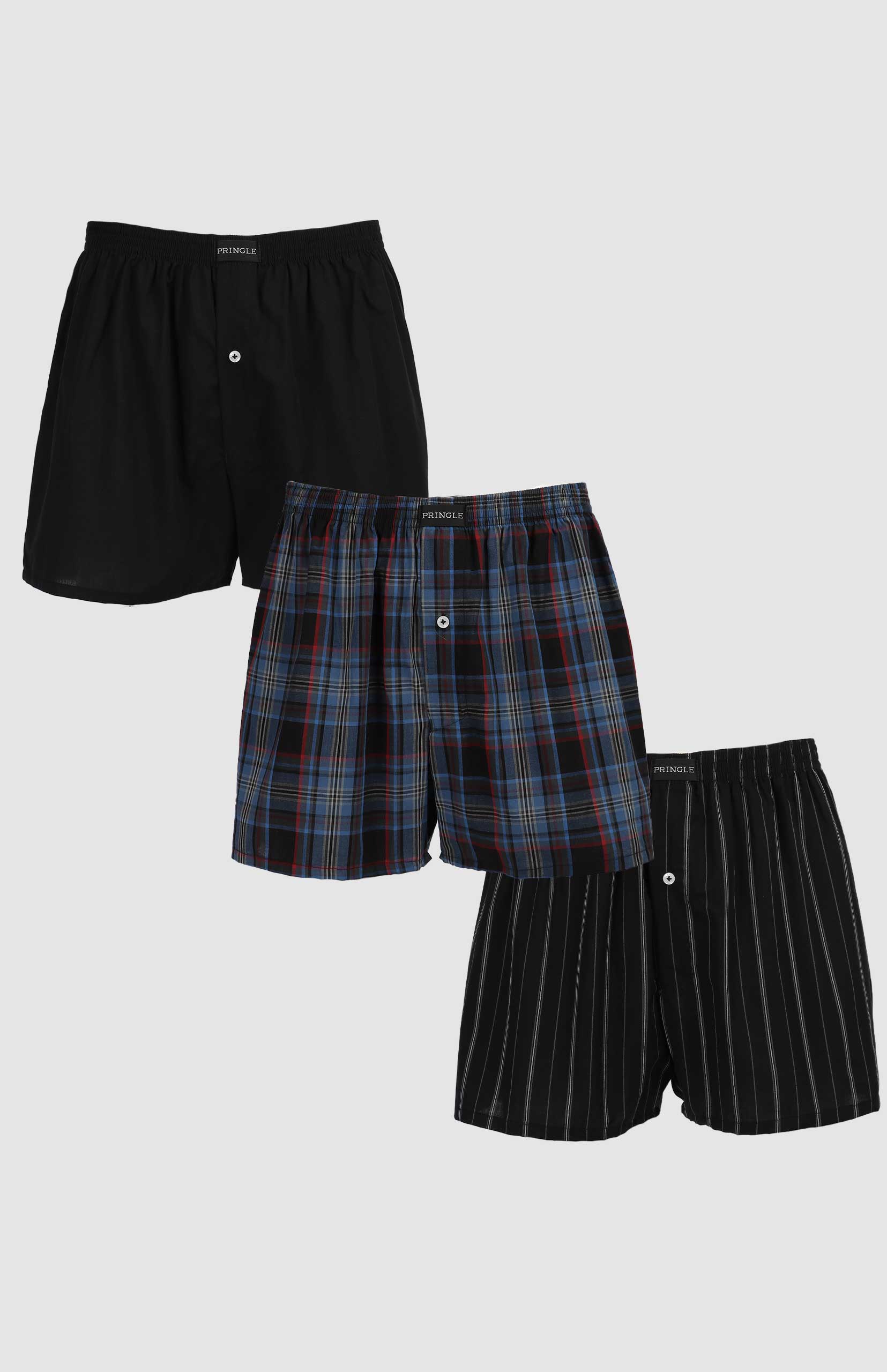 Experience premium comfort with the Pringle Jay 3 Pack Woven Boxers. Crafted from high-quality cotton, these boxers offer a lightweight, breathable feel with a traditional woven finish. Designed for everyday wear, they feature an elasticated waistband for a secure fit and a relaxed silhouette that ensures unrestricted movement. Each set includes a mix of timeless patterns and colours, combining function with understated style. Perfect for the man who values quality and comfort in his essentials.