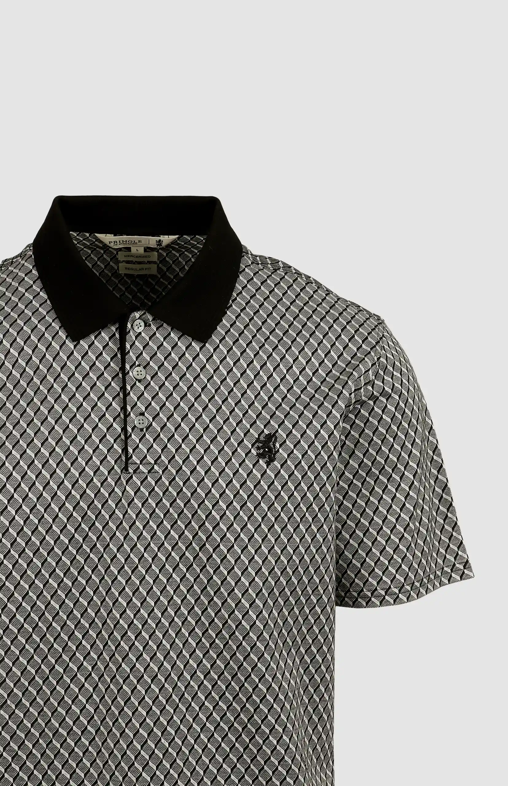 Elevate your everyday style with the Pringle Spencer Mercerised Jacquard Golfer, a refined take on the classic polo. Expertly crafted from 100% premium cotton, this golfer undergoes a double mercerisation process, enhancing its sheen, softness, and durability.
