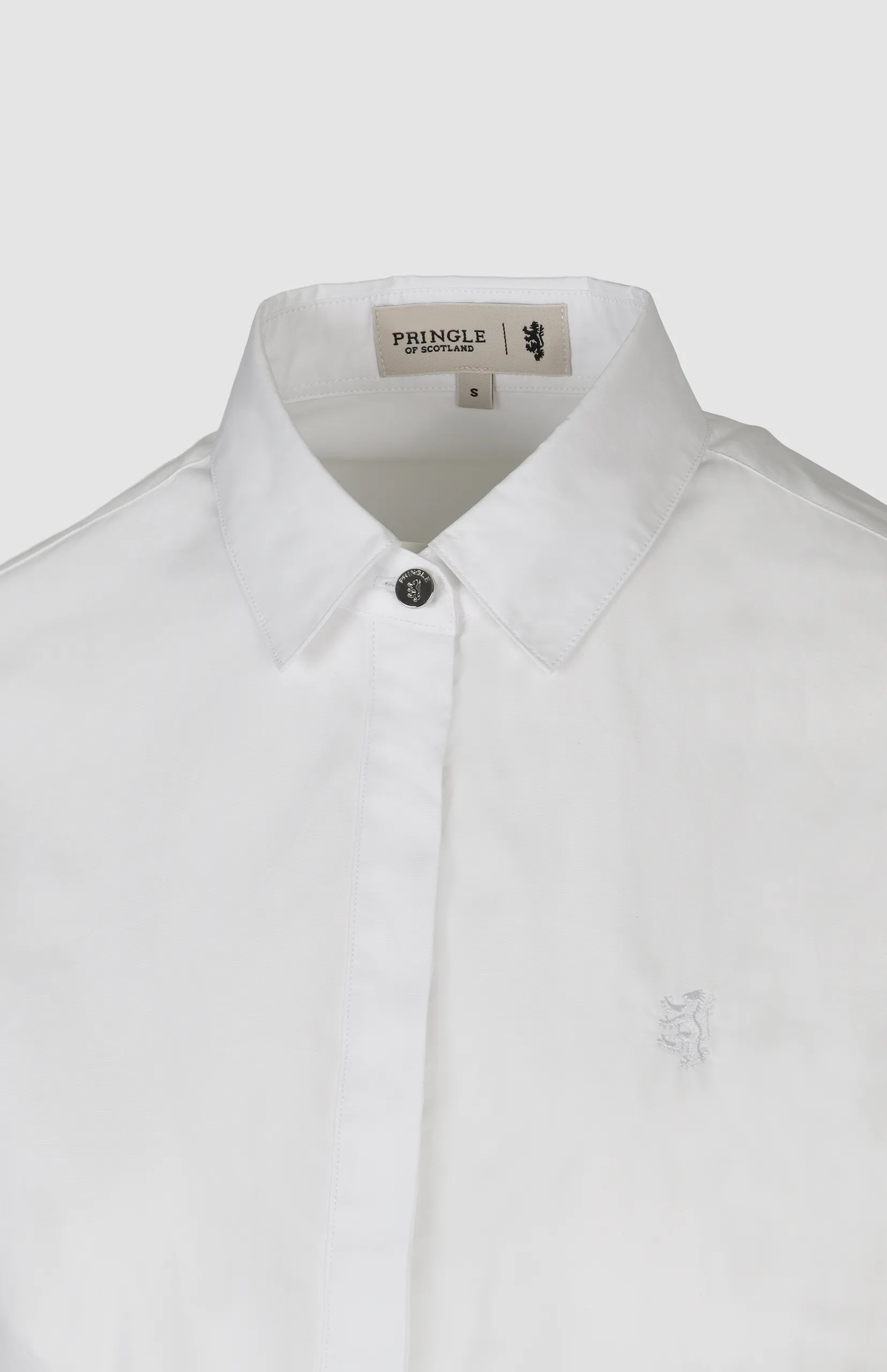 The Pringle Ella Woven Shirt is a crisp wardrobe essential with a modern, structured fit. Made from a smooth woven fabric, this long sleeve shirt features a sharp collar, concealed button placket, and darted seams for a flattering silhouette. Clean and refined, the Ella is perfect for both professional settings and polished everyday wear.