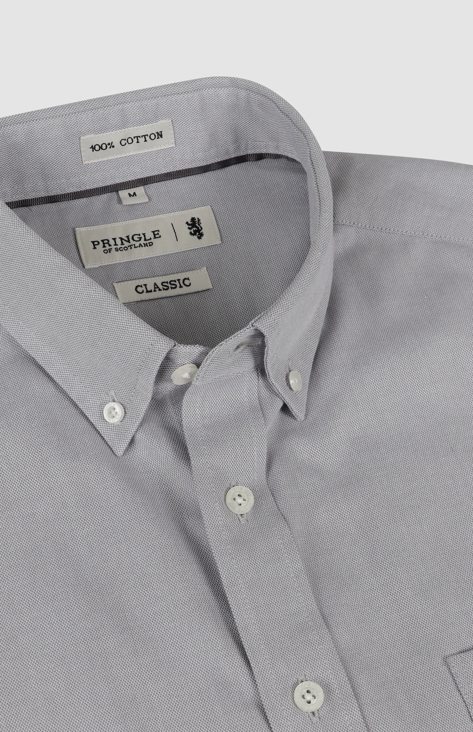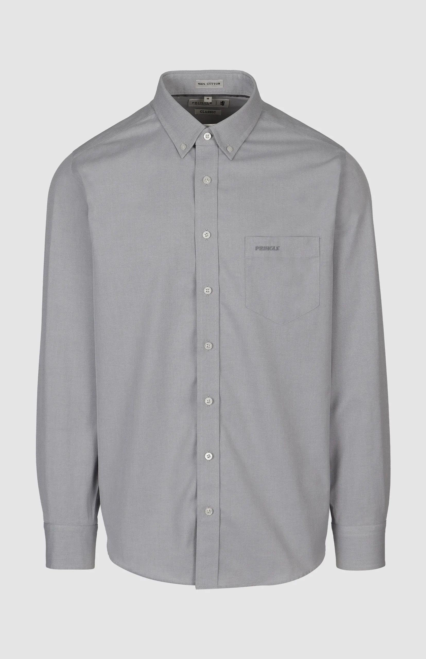 A classic long-sleeve textured shirt crafted from easy-care cotton with a clean button-down collar and subtle Pringle embroidery.