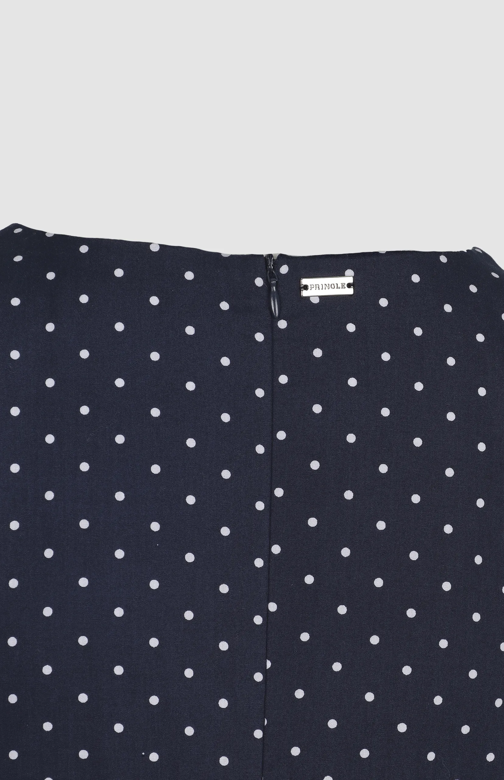 The Chloe Spot Midi Dress brings a playful yet refined touch to classic mid-season dressing. Cut from smooth cotton sateen, it offers a structured yet comfortable feel against the skin. The fit-and-flare silhouette defines the waist and creates soft movement through the skirt, while the subtle spot print adds a timeless charm. Complete with Pringle hardware at the back, this versatile style works beautifully for daytime outings, office wear, or polished weekend looks.