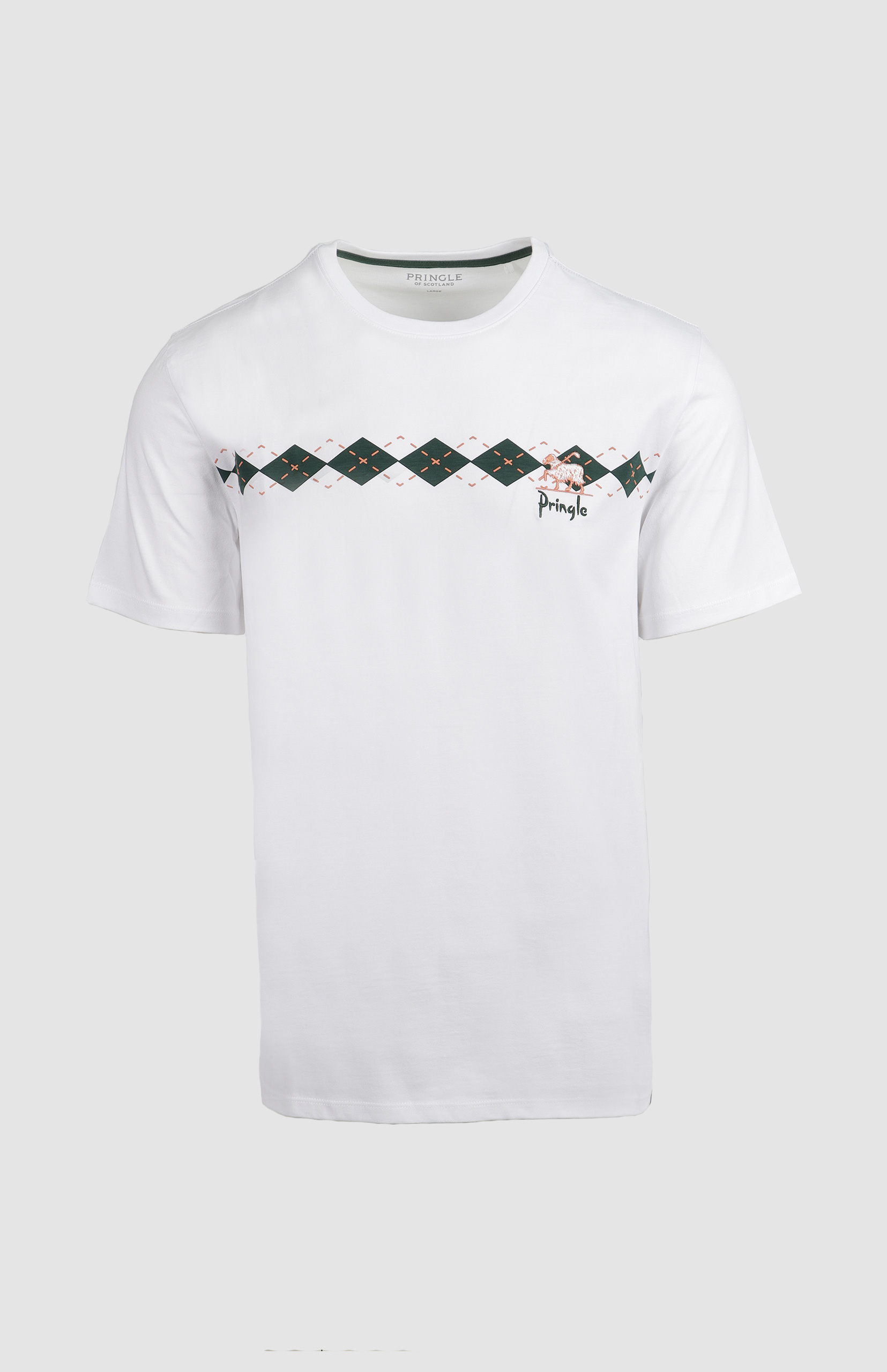 The Pringle Harry Argyle Print T-Shirt brings a modern twist to the brand’s heritage with its bold argyle-inspired print. Crafted from soft, breathable cotton, this crewneck tee blends everyday comfort with standout style.